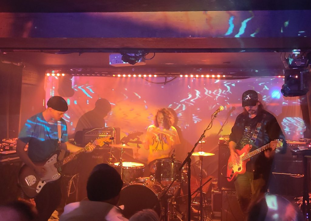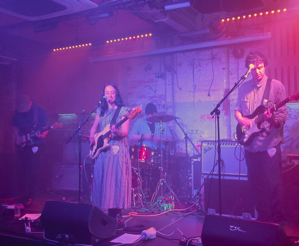 It’s a warm balmy evening and so even though it’s Monday there’s lots of people enjoying the last rays on Stevenson Square (you take your beer garden opportunities when they arise round these parts) but that hasn’t put off a decent crowd descending the steps into the grotty but welcoming Soup cellar – amid the scuzzy, graffiti strewn vibe (CBeebies GBs I call it) the aircon is on, the vibe is cool and slightly damp – and there’s some suitably summery rock action going down.